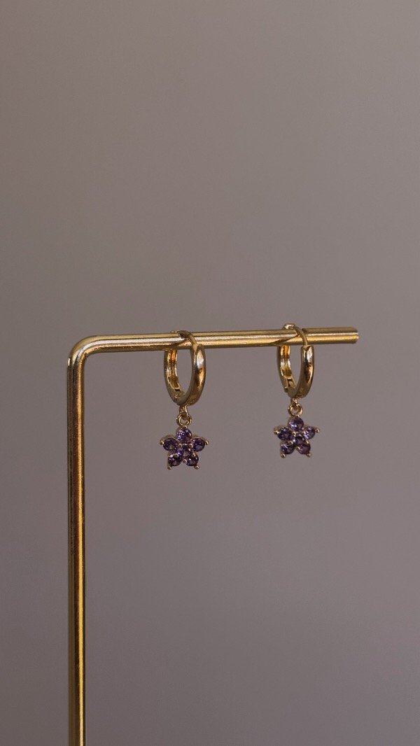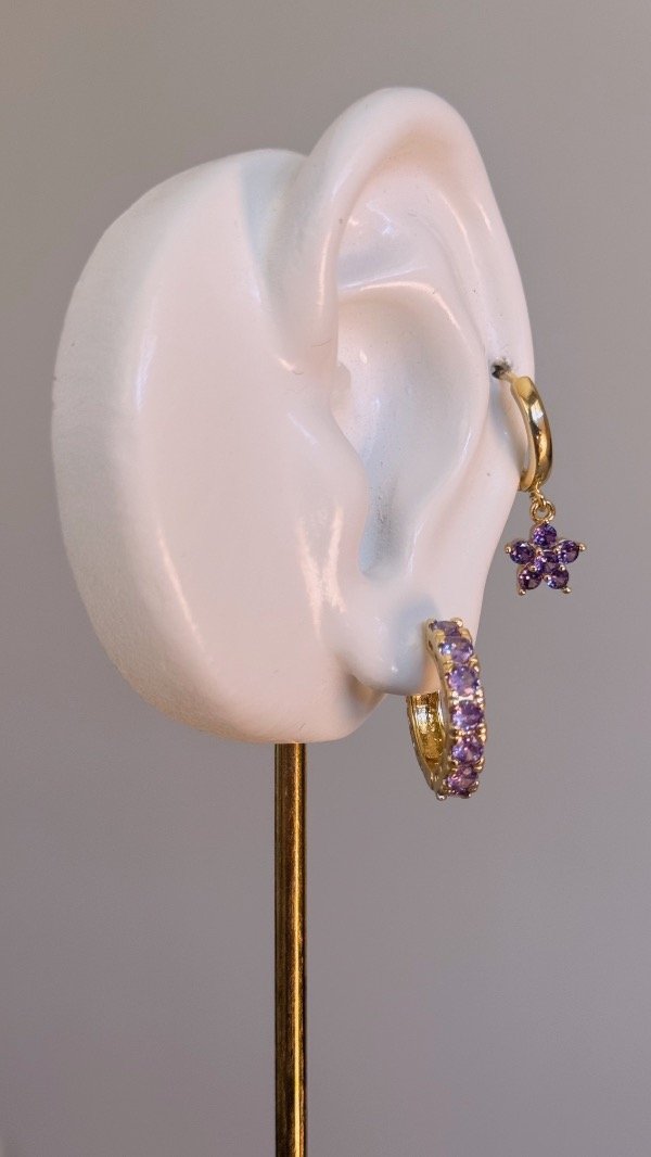 Par de argollas con colgante de flor lila